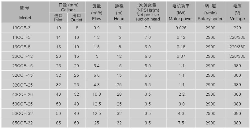 CQF型產(chǎn)品以增強(qiáng)聚丙烯為主要材料,泵的過流零部件均為注塑成型,能耐大多數(shù)的有機(jī)和無機(jī)酸、堿和鹽類溶液,也適于在室外大氣中暴露,對(duì)應(yīng)力腐蝕破裂的抗蝕性良好。