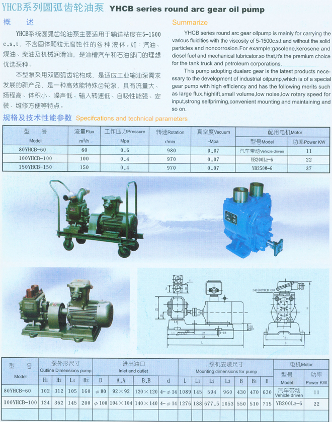 YHCB系統(tǒng)圓弧齒輪油泵主要適用范圍于輸送粘度在5-1500c.s.t,不含固體顆粒無腐蝕性的各種液體。如:汽油、煤油,柴油及機(jī)械潤滑油,是油槽汽車和石油部門的理想優(yōu)選泵種。