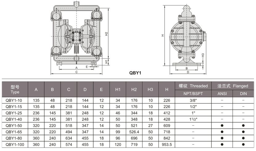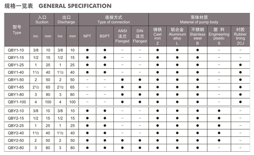 ■ 產(chǎn)品概述QBY 氣動隔膜泵既能抽送流動的液體,又能輸送一些不易流動的介質(zhì),具有自吸泵、潛水泵、屏蔽泵、泥漿泵和雜質(zhì)泵等輸送機(jī)械的許多優(yōu)點(diǎn)。