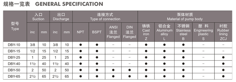 | ■ 產(chǎn)品概述 電動隔膜泵是一種新型的泵類,近年來,由于在隔膜材質(zhì)上取得了突破性的進(jìn)展,國際上越來越多的工業(yè)化國家采用此種型式的泵,取代部份離心泵、羅桿泵,來應(yīng)用于石化、陶瓷、冶金等行業(yè),DBY型隔膜泵適用于低壓,即出口壓力≤3kgf/cm2的場合。 ■ 性能特點(diǎn) 一、不需灌引水,自吸能力達(dá)7米以上。 二、通過性能好,直徑在10毫米以下的顆粒、泥漿等均可以毫不費(fèi)力地通過。 三、由于隔膜將被輸送介質(zhì)和傳動機(jī)械件分開,所以介質(zhì)絕對不會向外泄漏。且泵本身無軸封,使用壽命大大延長。根據(jù)不同介質(zhì),隔膜分為氯丁橡膠、氟橡膠、丁晴橡膠等,可以滿足不同用戶的要求。 四、泵體介質(zhì)流經(jīng)部份,可根據(jù)用戶要求,分為鑄鐵、不銹鋼、襯膠,電機(jī)分為普通式和防爆式(B3d)兩種。 ■ 主要用途 1. 各種劇毒、易燃、易揮發(fā)液體。2. 各種強(qiáng)酸、強(qiáng)堿、強(qiáng)腐蝕液體。3. 可輸送較高溫度的介質(zhì)150℃。4. 作為各種壓濾機(jī)前級送壓裝置。5. 熱水回收及循環(huán)。6. 油罐車、油庫、油品裝卸。7. 泵吸泡菜果醬、土豆泥、巧克力等。8. 泵吸油漆、樹膠、顏料粘合劑。9. 各種瓷器釉漿水泥灌漿灰漿泥漿。10. 各種橡膠漿乳膠、有機(jī)溶劑、填料。11. 用泵為油輪駁船清倉吸取倉內(nèi)污水及剩油。12. 啤酒花及發(fā)酵粉稀漿、糖漿、糖密。13. 泵吸礦井、坑道、隧道、下水道中污水、沉淀物。14. 各種特殊介質(zhì)的吸送。 |